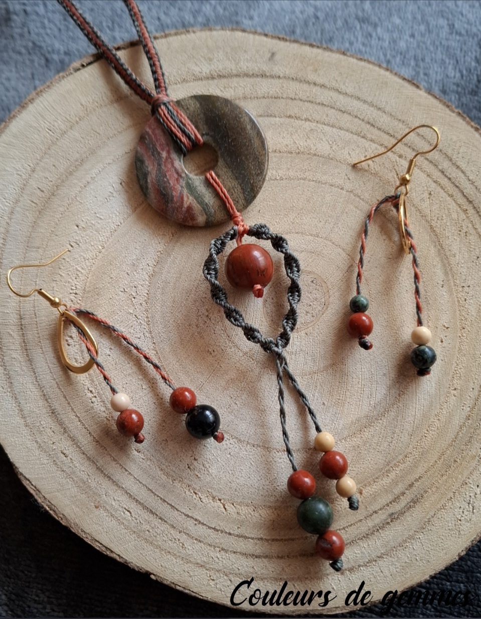 pendentif jaspe composé de jaspe mokaïte et paysage. Réglable avec son fermoir coulissant.